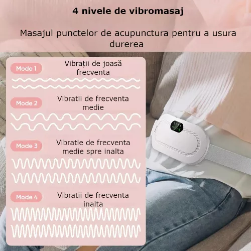 Aparat centura abdominala incalzire si masaj anti dureri menstruale ciclu lombare digital 3 trepte incalzire si 3 vibromasaj portabil