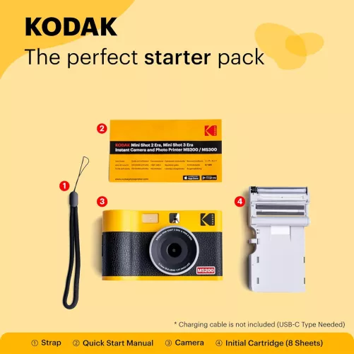 Redescopera bucuria fotografiei instantanee cu Kodak Mini Shot 2 ERA MS200. Aceasta camera instantanee compacta si eleganta de 13 megapixeli surprinde momentele pretioase si le imprima in cateva secunde in format de 5,3 x 8,6 cm (2,1 x 3,4''), pentru amintiri de neuitat de impartasit. Datorita ecranului LCD de 1,7", poti vedea fotografia inainte de a o imprima! De asemenea, imprimi fotografii de pe smartphone sau tableta prin Bluetooth. Disponibila in negru sau galben.