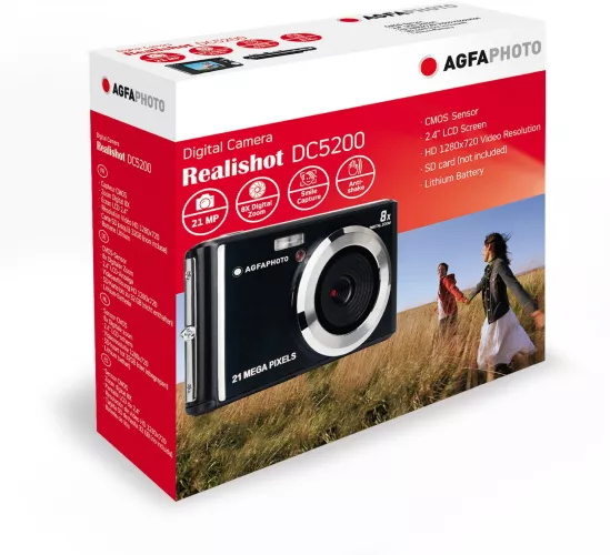 AgfaPhoto DC5200 este o camera digitala care face fotografii la o rezolutie de pana la 21 MP si inregistreaza videoclipuri HD de 1280 x 720 .