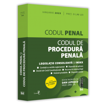 Editia a 26-a (revizuita) a lucrarii, Codul penal si Codul de procedura penala: ianuarie 2023, tiparita pe hartie alba de calitate superioara si ingrijita de prof. univ. dr. Dan Lupascu, cuprinde Codul penal si Codul de procedura penala actualizate, articolele celor doua Coduri fiind insotite, acolo unde este cazul, de dispozitii tranzitorii, de aplicare sau conexe, necesare unei depline intelegeri a reglementarii.