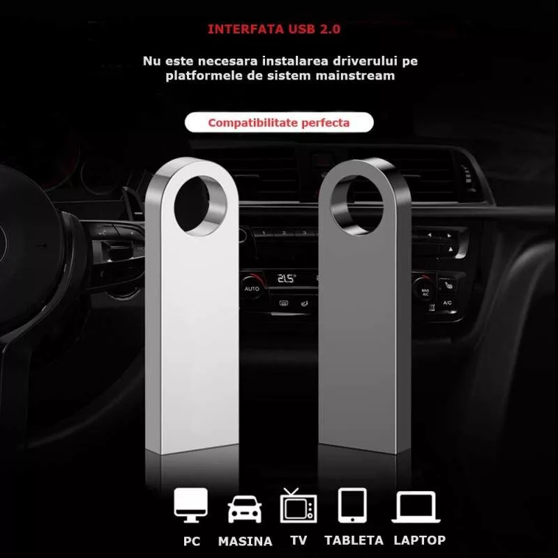 Interfată de Conexiune: USB - Memoria externă foloseste o interfată USB pentru a se conecta la diverse dispozitive, oferind o compatibilitate largă cu computere, laptopuri, televizoare si alte dispozitive cu porturi USB.